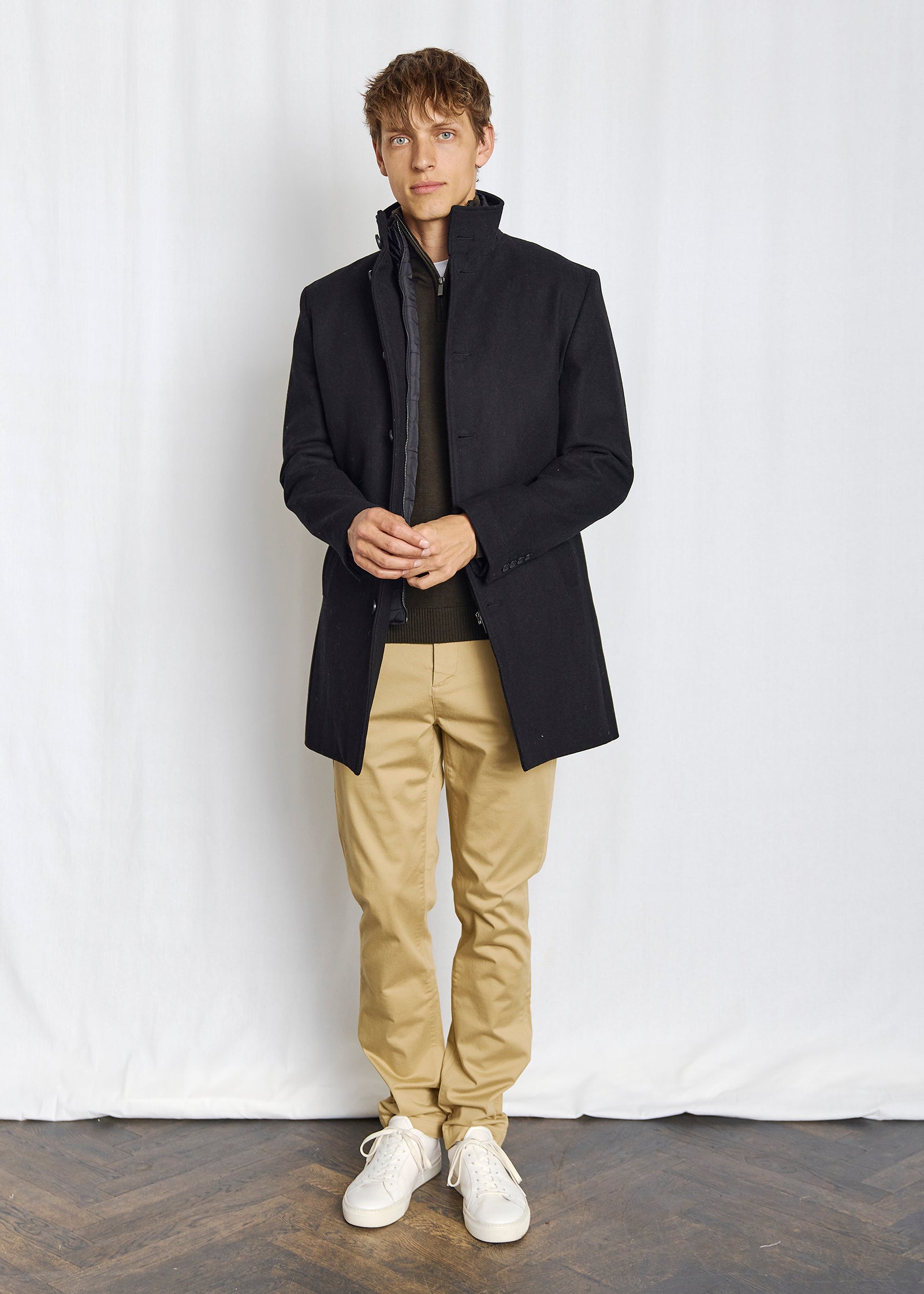 A best-selling coat – a classic that returns season after season. Made from a wool and polyester blend with a 6-button closure and a detachable, padded inner vest with zipper. The design features two external and two internal pockets, as well as a vent at the back. A beautiful and timeless coat for men.