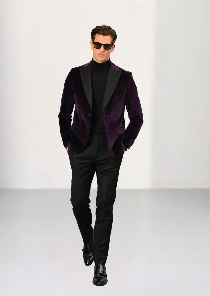 Velvet Peak Lapel Tuxedo Jacket - Eggplant