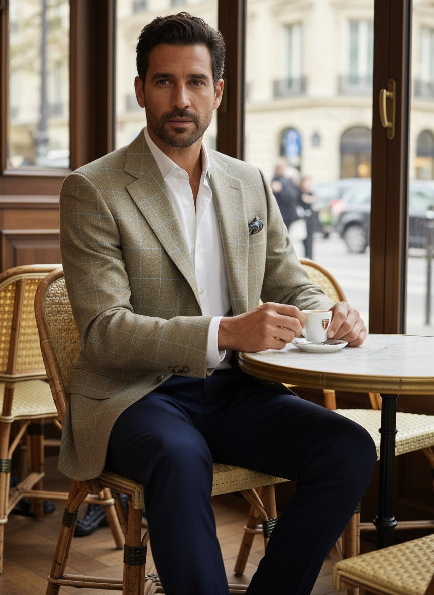 Virgin Wool Cashmere Windowpane Blazer - Light Brown