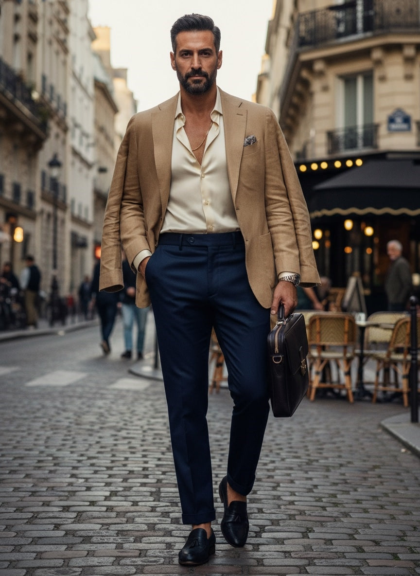 Pleated Trousers with Cuffs - Navy Blue