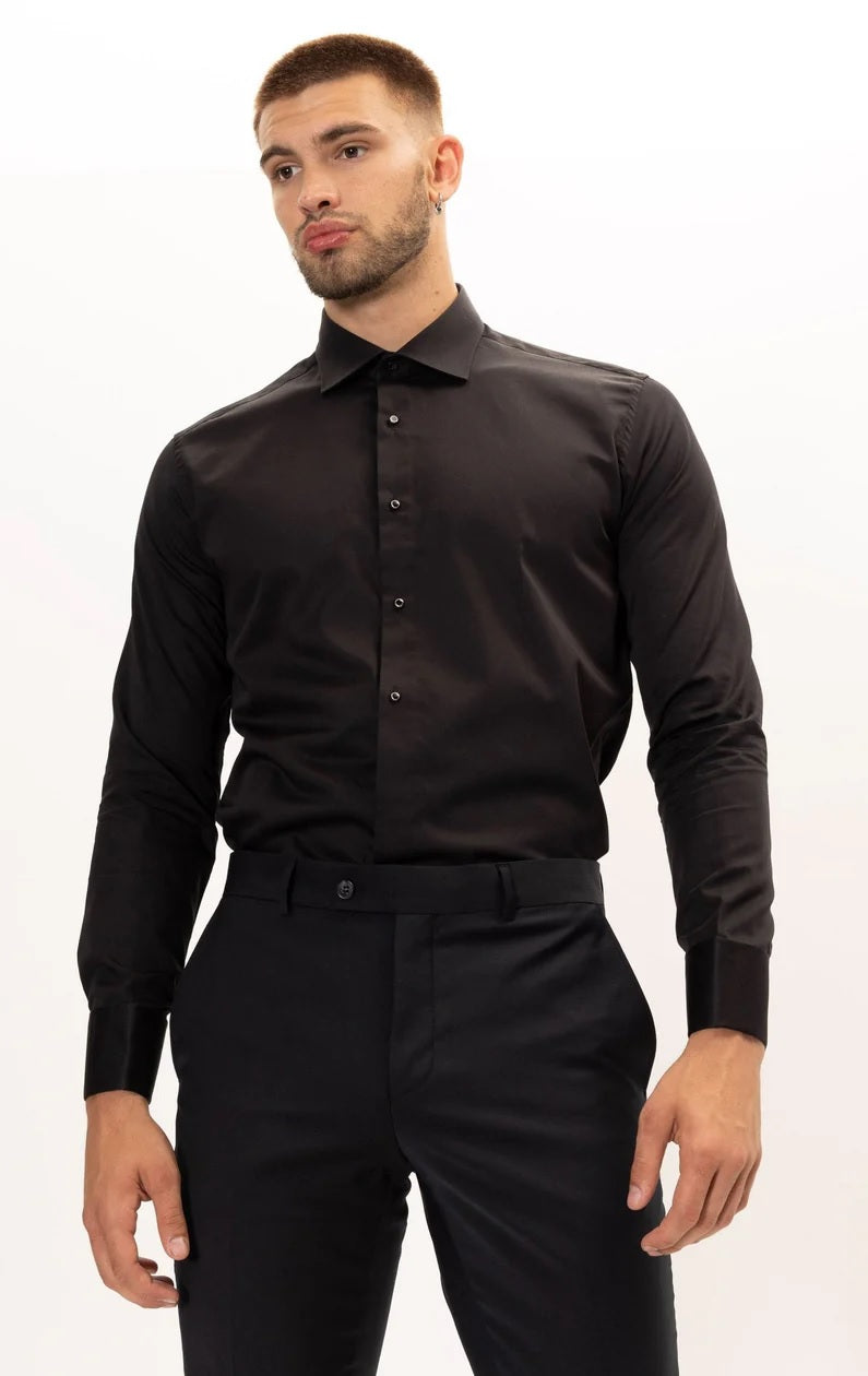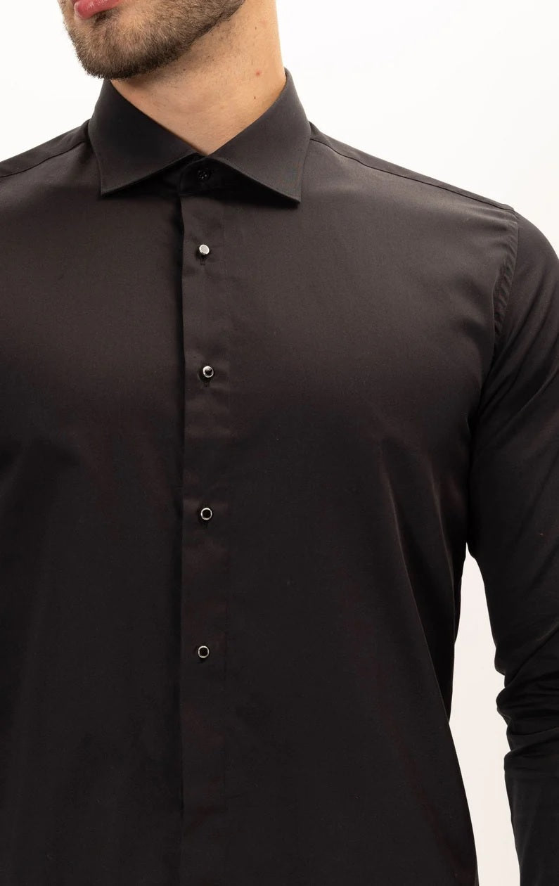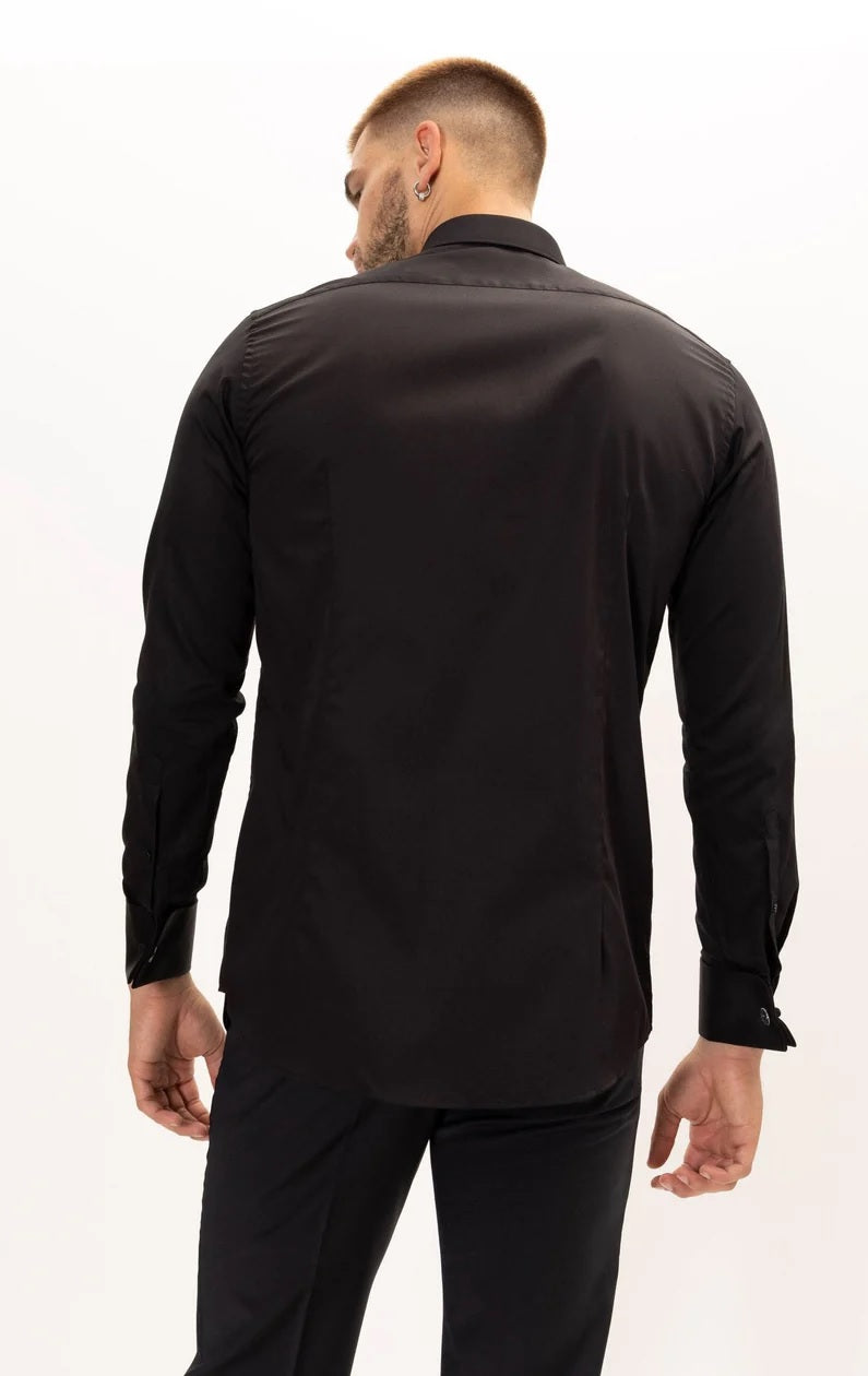 Classic Collar Jewel Button Tuxedo Shirt - Black