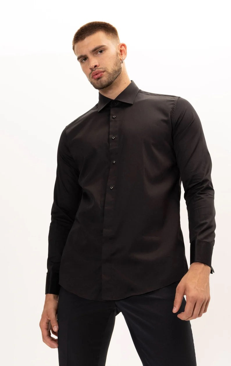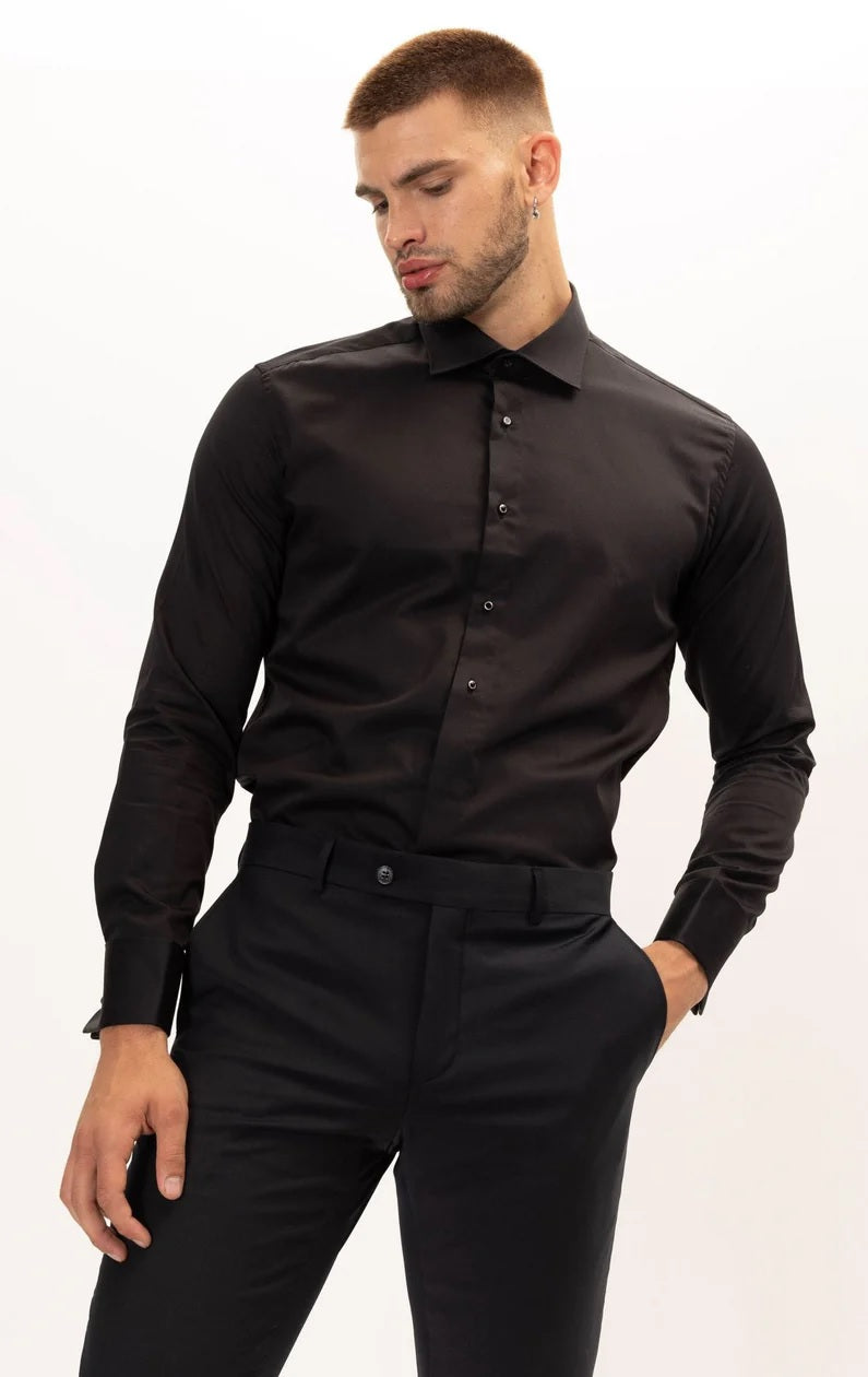 Made with European pure cotton premium 50s single-ply sateen fabric. It is silky and refined. This high thread count makes a shirt that looks great for a clean suited look.