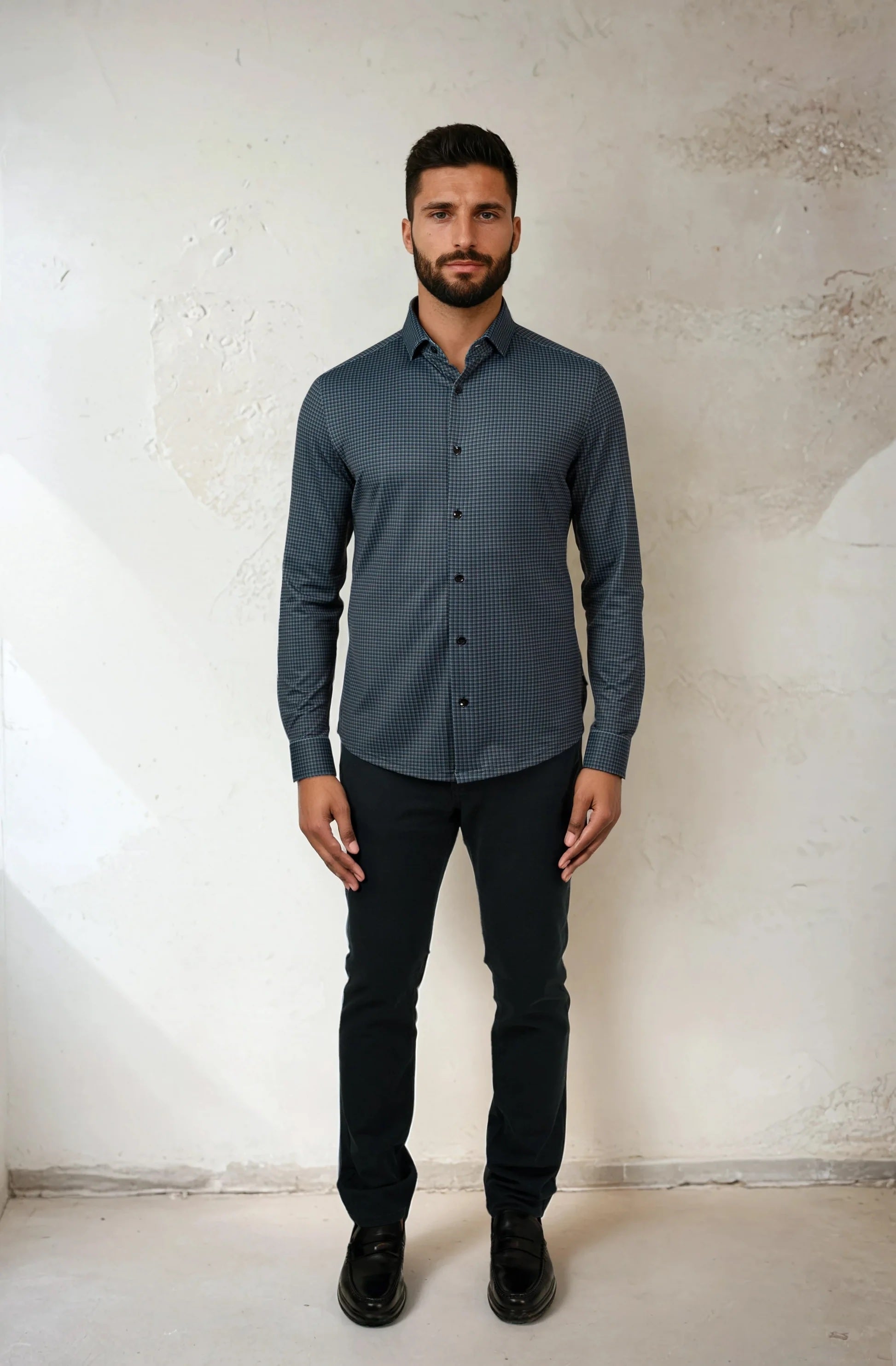 Performance Stretch Houndstooth Shirt - Dark Grey