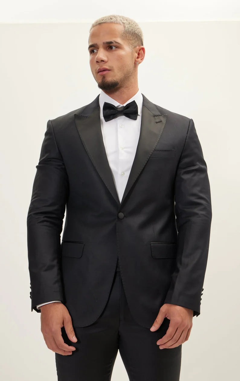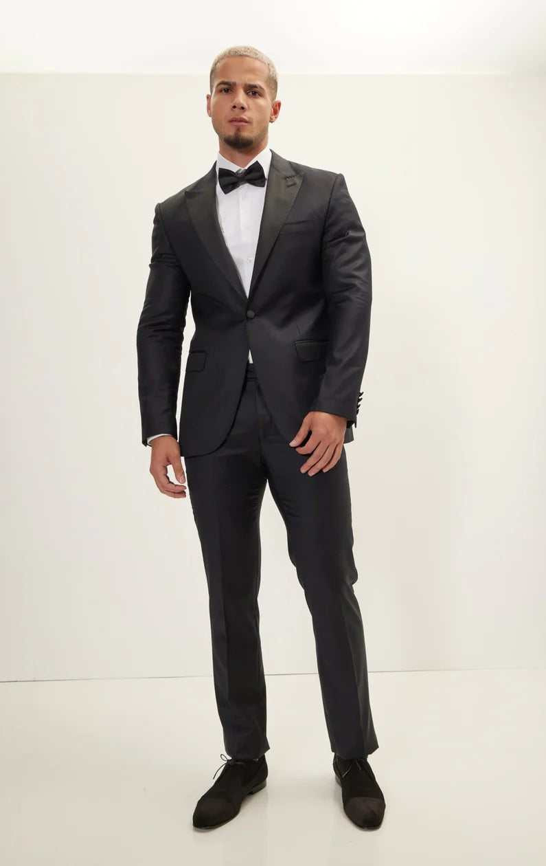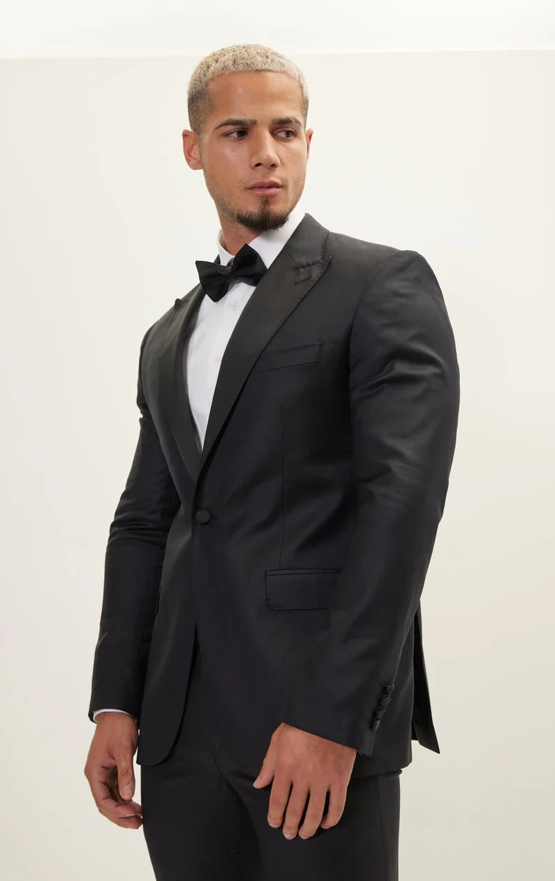 Super 180's Merino Wool & Silk Tuxedo - Matte Black