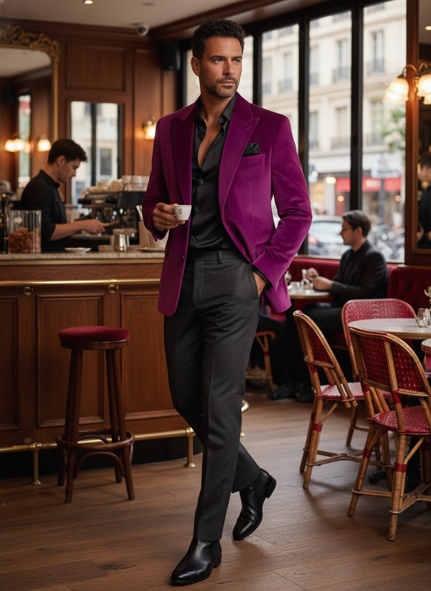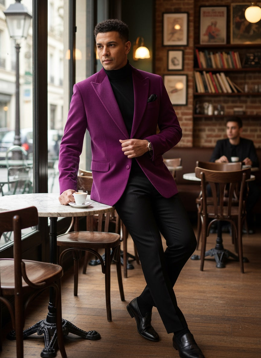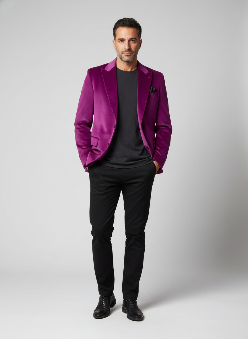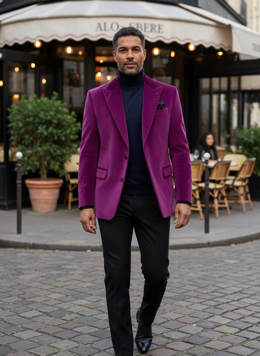 Velvet Peak Lapel Tuxedo Jacket - Magenta