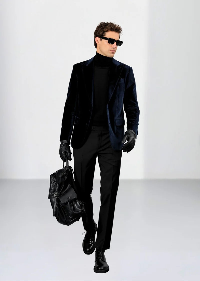 Velvet Peak Lapel Tuxedo Jacket - Navy