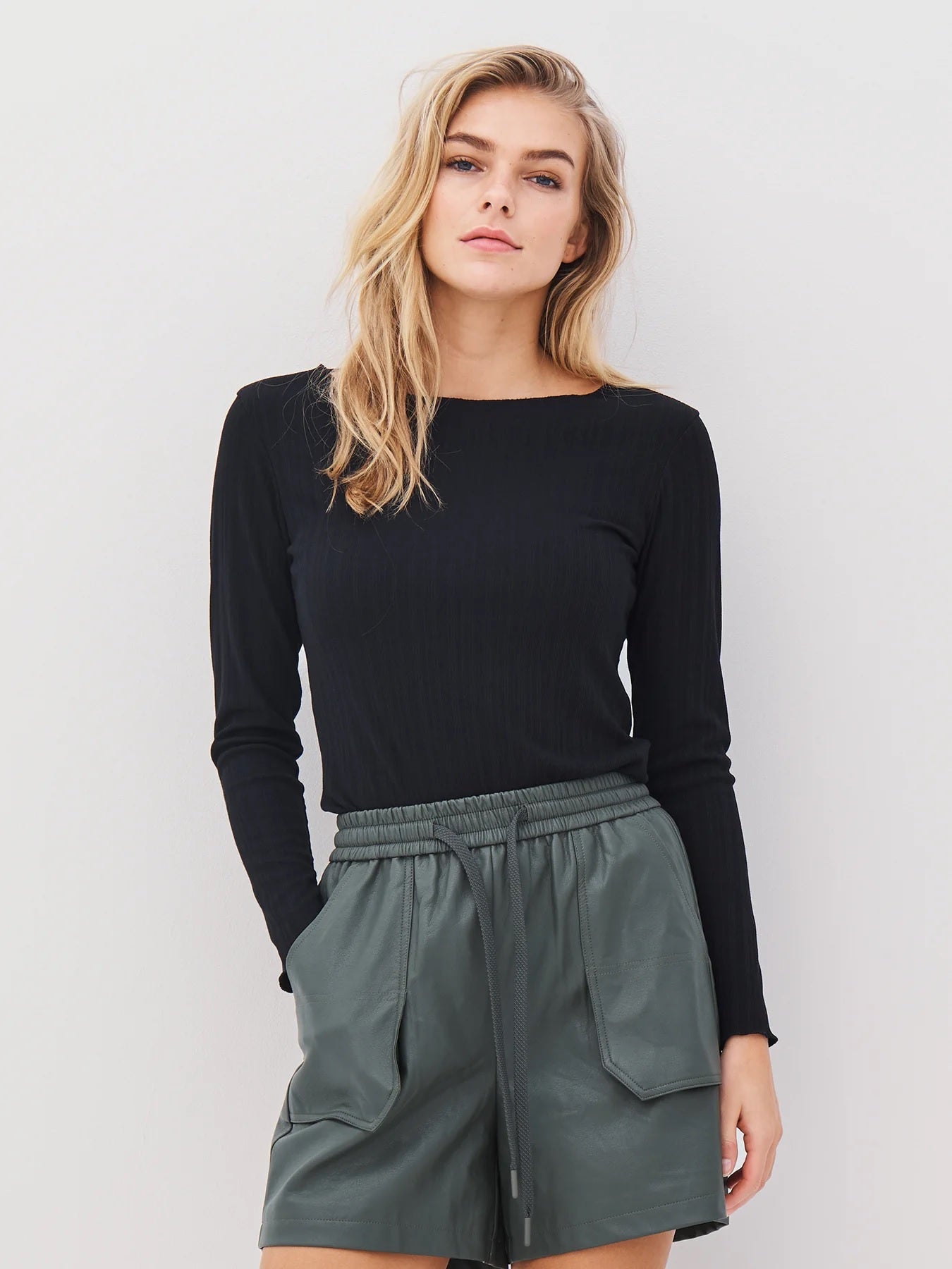 This T-shirt has a slim fit and is made from a soft, ribbed material that provides both comfort and structure. The long sleeves and round neckline make it suitable as a wardrobe staple. The simple design makes it easy to combine, whether you're going for a casual or a more polished look.