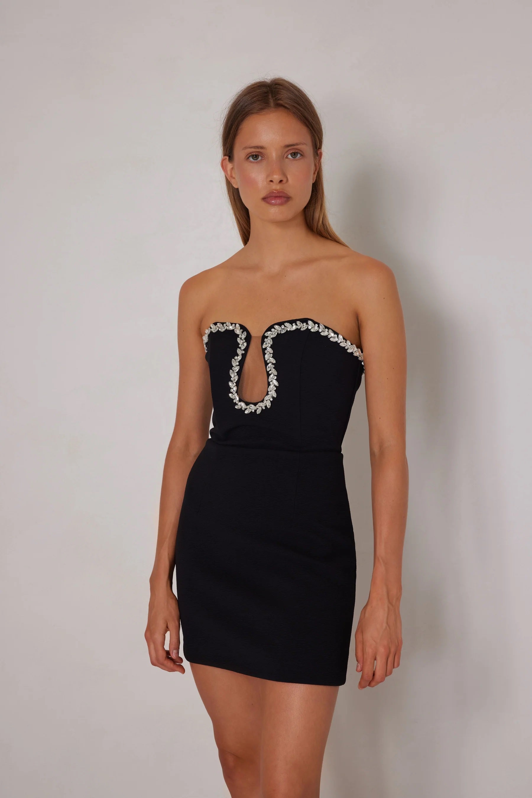 Fitted Strapless Mini with Embellished Neckline - Black