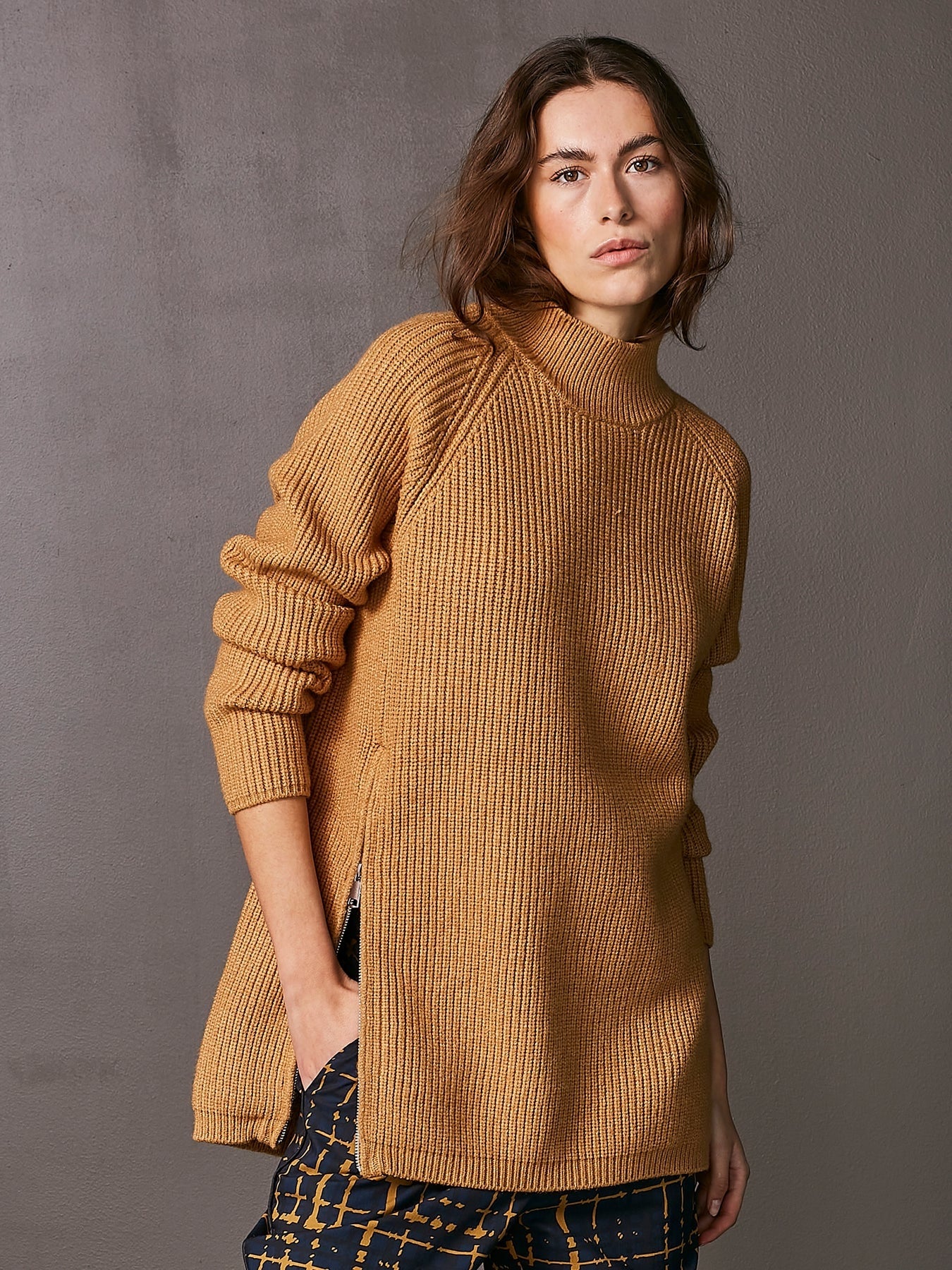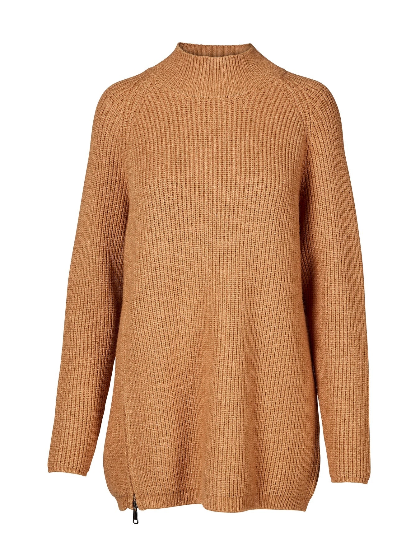 Venja Ribbed Mock Neck Sweater with Zipper - Sand